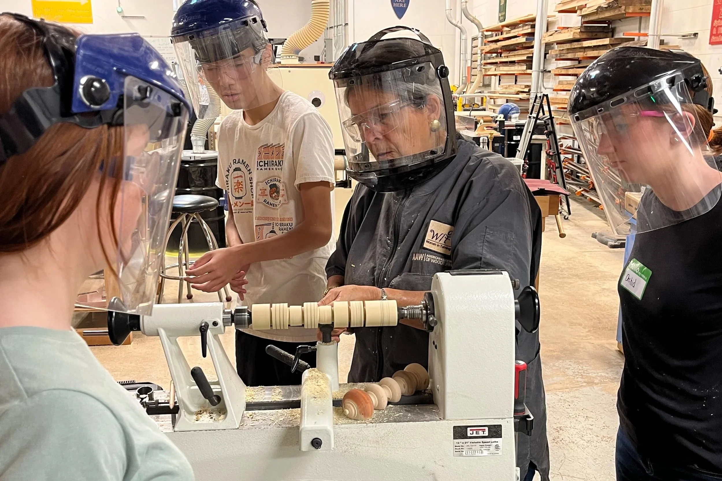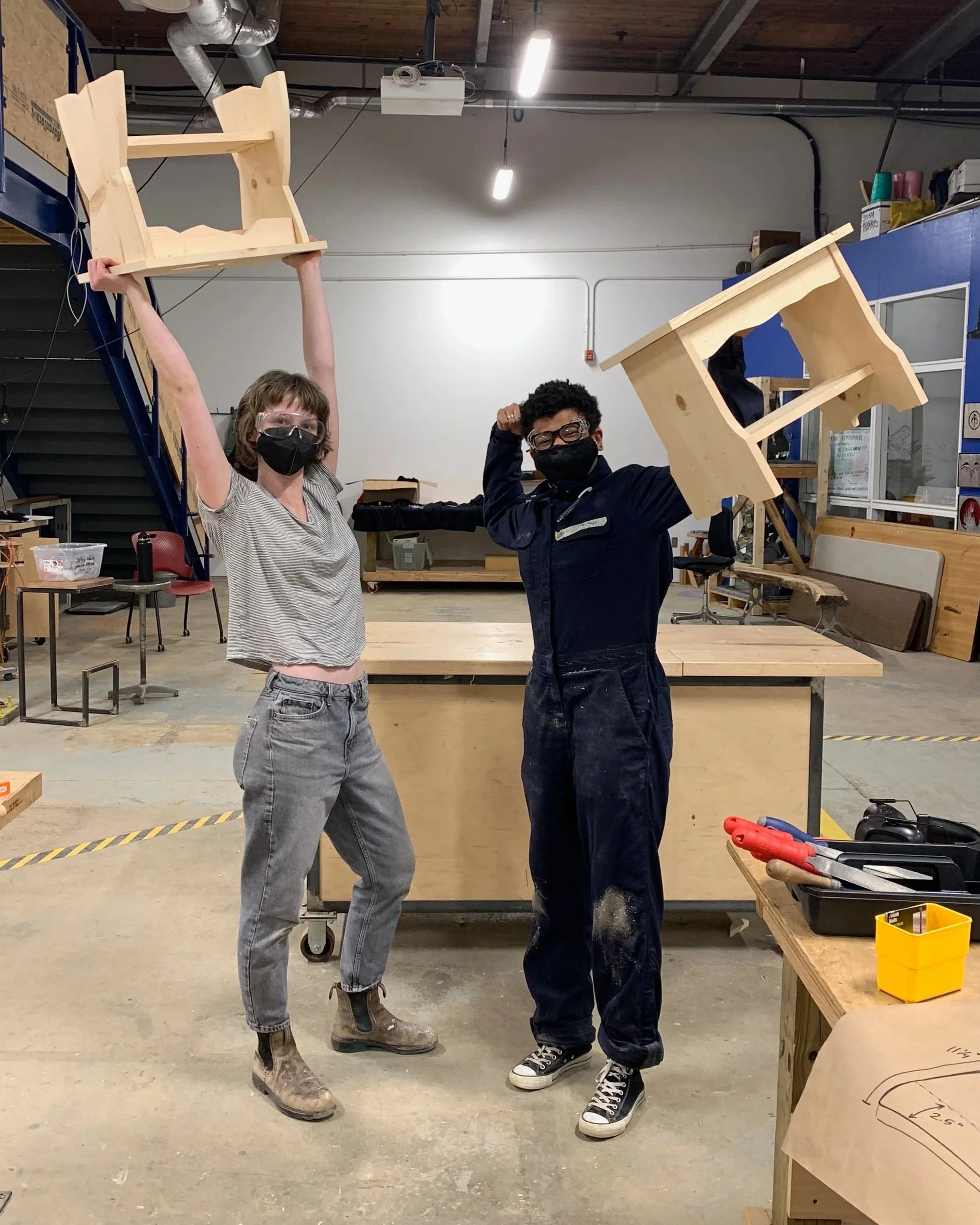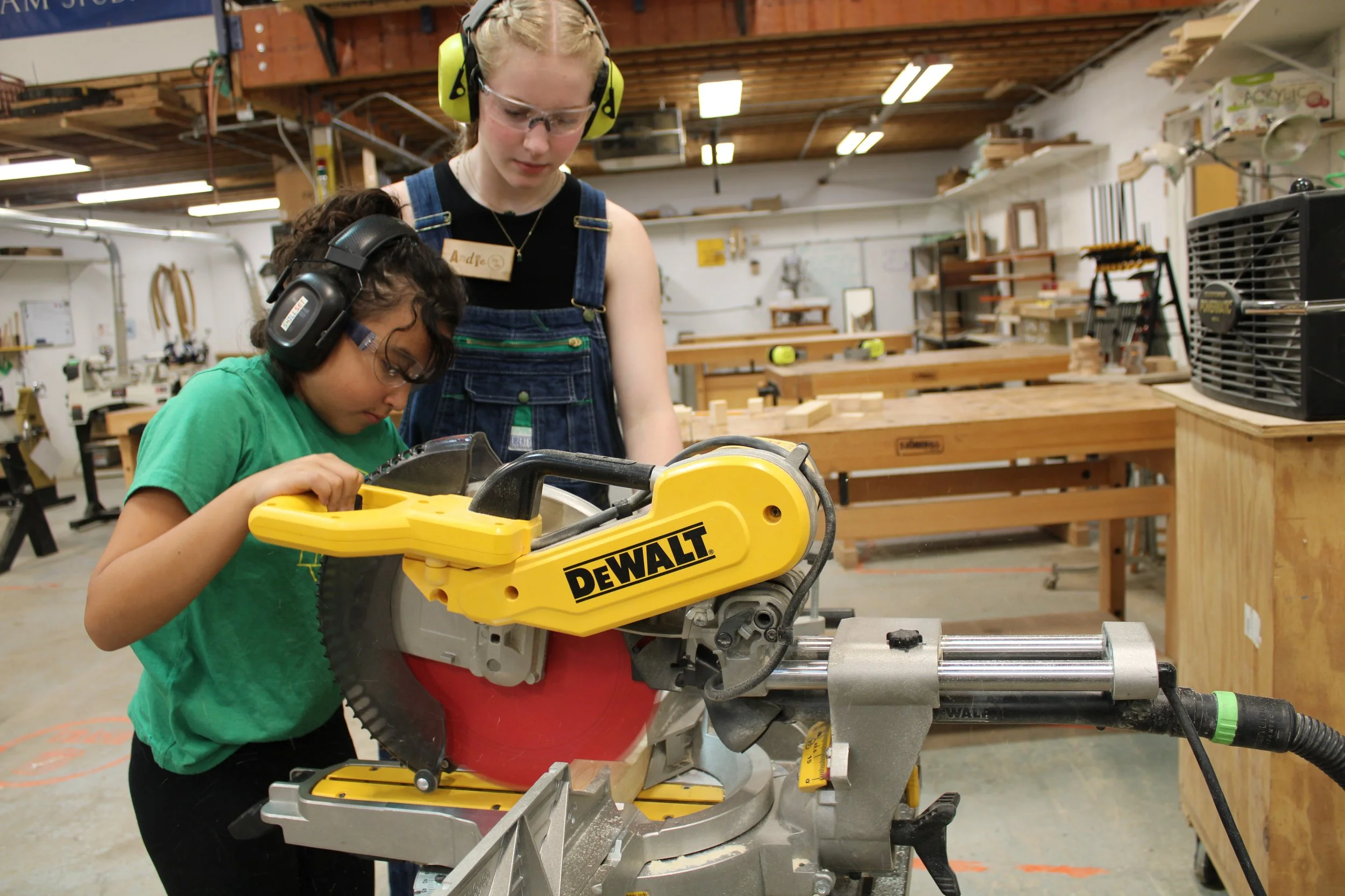 Past workshops have included: welded pendant lamps, wooden benches, custom cutting boards, picture frames, bandsaw boxes, bird houses, chairs, and woodturning. During these projects, participants learn how to safely operate miter saws, bandsaws, planers, hand tools, MIG welders, lathes, drills, sanders, and many more tools.